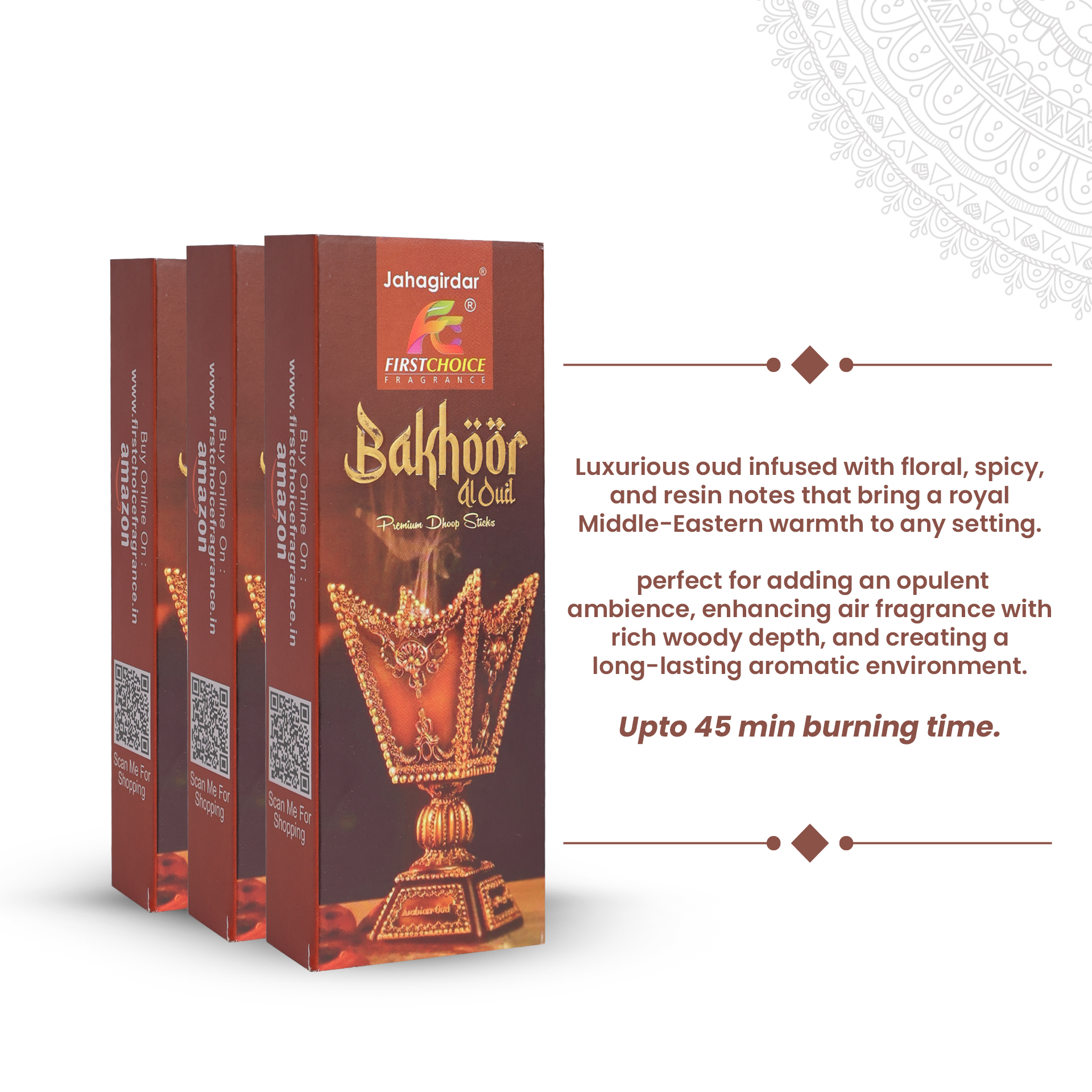 Ideal for creating a rich, warm aura at home, enhancing your atmosphere with a luxurious oud scent, or elevating everyday moments with a deep, long-lasting aromatic experience.